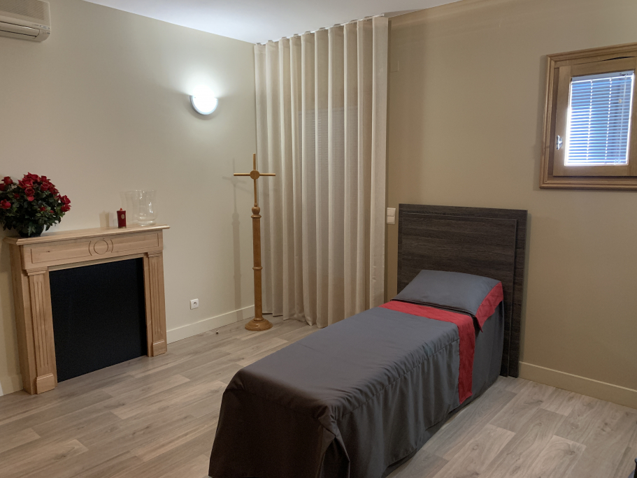 Notre salon funéraire permet aux proches du défunt de se recueillir en toute intimité dans un cadre chaleureux et moderne. Nous mettons également à votre disposition un espace de convivialité équipé d’une machine à boissons chaudes et froides.